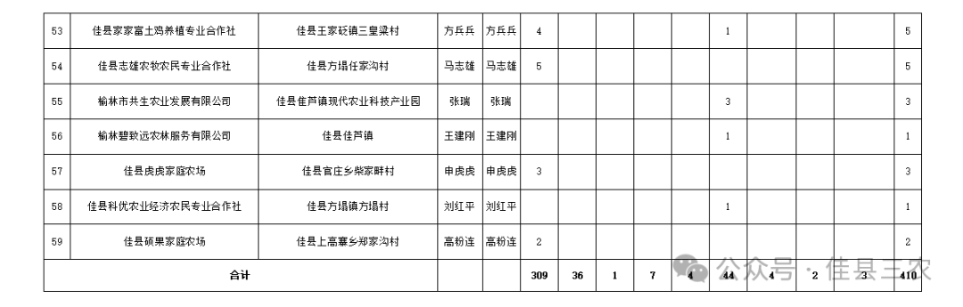根据中共佳县县委办公室 佳县人民政府办公室《关于印发<佳县2026年巩固拓展脱贫攻坚成果同乡村振兴有效衔接产业项目实施方案>的通知》(佳办发〔2025〕26号)和佳县农业农村局《关于印发<佳县2026年旱作集成技术项目实施方案>的通知》(佳政农发〔2026〕30号)精神,按照“公平、公正、公开”的原则,我局于2026年3月24日—4月7日,在全县范围内公开遴选农业生产社会化服务主体,经县农机服务中心通过查阅主体申报资料、核对农机型号和编号,共确认59家主体具备服务资格,现按有关规定进行公示,公示无异议后纳入2026年全县农业生产社会化服务主体名录进行管理。