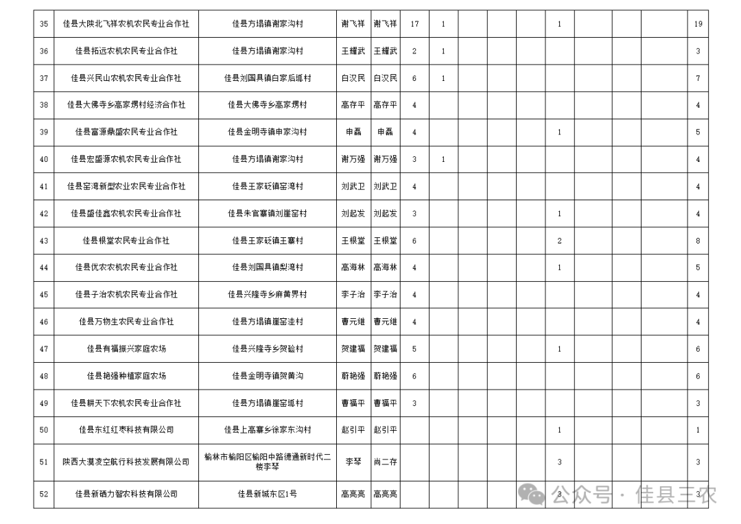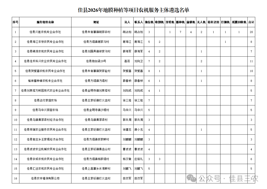 附件:佳县2026年地膜种植等项目农机服务主体遴选名单