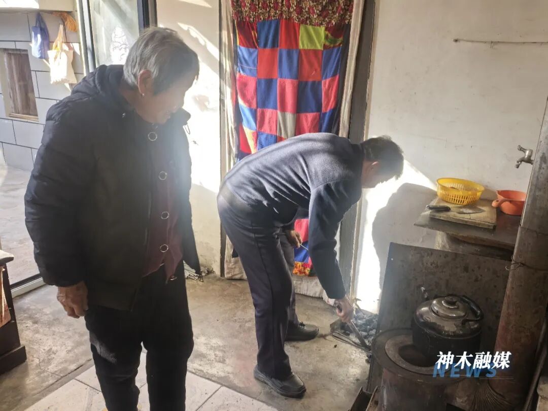“睡前一定要留个通风口,千万不要把窗户封死,平时也要记得及时清理烟囱和烟道。”近日,在神木市马镇镇马镇村闫花秀家中,村党支部书记焦养生详细检查了取暖设备,并反复叮嘱老人注意燃煤取暖安全。
